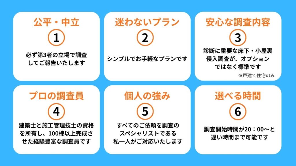 前回の記事では、住宅診断の適正価格についてお伝えしました。その内容ですが、現在は調査員に一級建築士を選びましょうと、おススメする調査会社が多く、そのために調査価格が高額になっているというお話しをさせていただきました。 今 […]